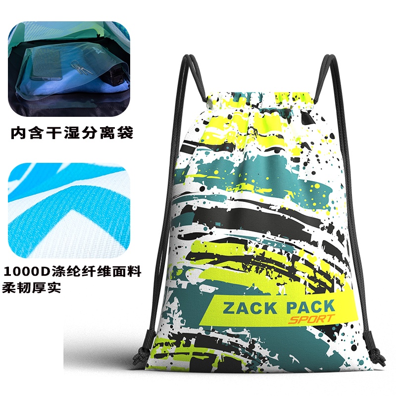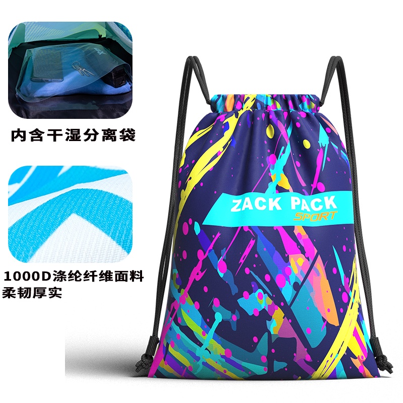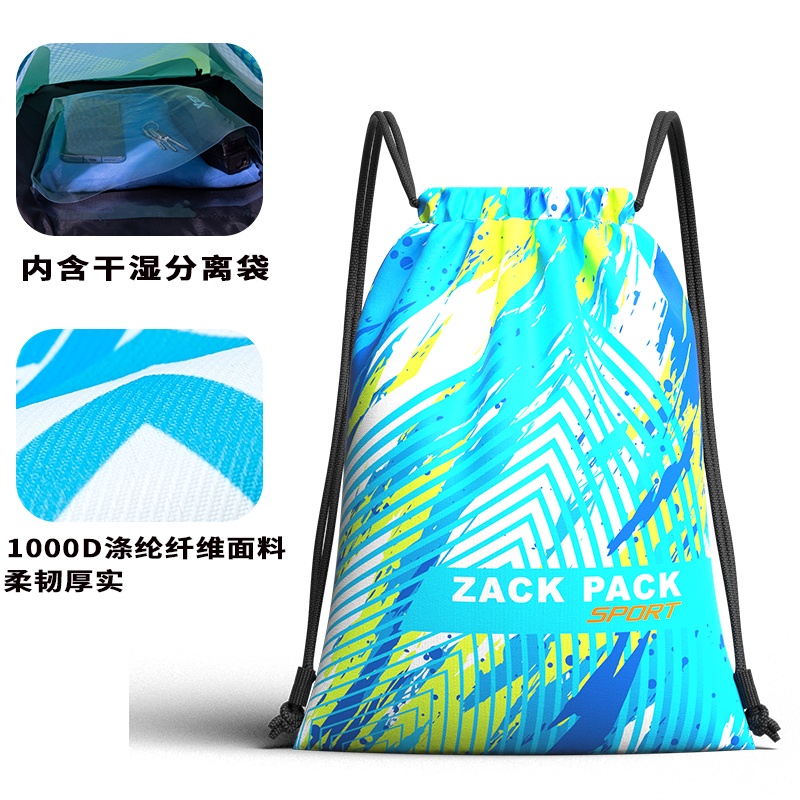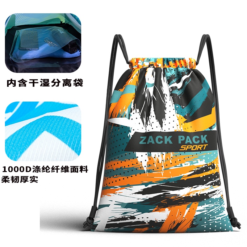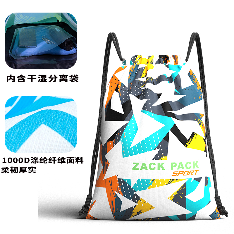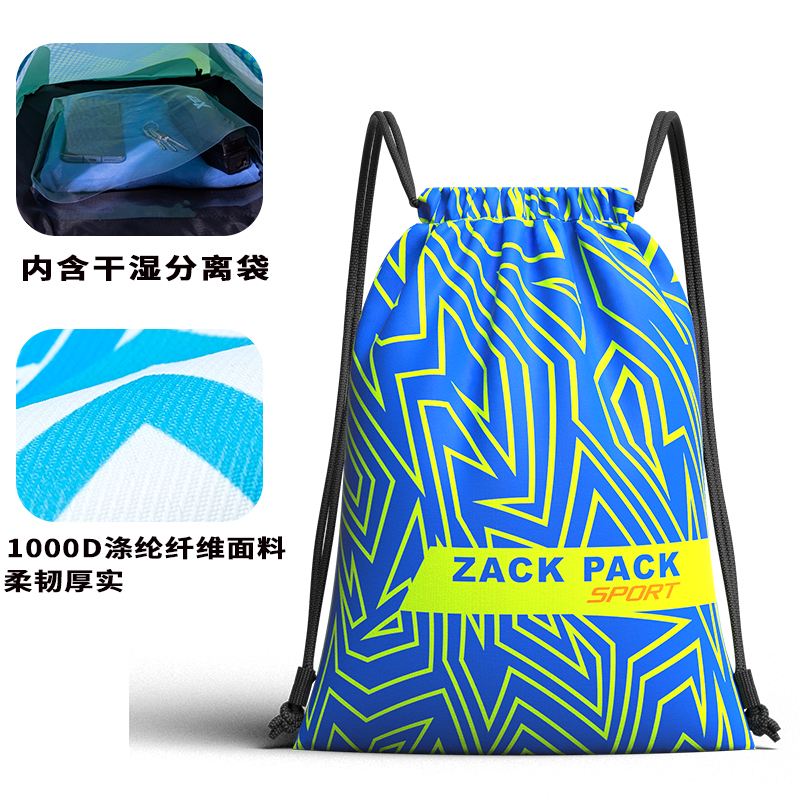 篮球背包定制LOGO简易防水运动抽绳双肩背包游泳包干湿分离束口袋